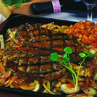 | いつでもボンステーキ(Tボーンを境に、ヒレとロースが同時に楽しめる贅沢なもの)が味わえる、日本でも数少ないお店。厳選和牛を炭火でジワッと焼きあげ、特製のタレをさっと掛ける。柔らかでジューシーな肉の旨みが口いっぱいに…。パンも手作り。気負いを感じさせない、ホッと寛げる気さくな雰囲気で食事ができるとあって、常連客も多い。ステーキの後の手打ちうどんコロも隠れ人気メニュー。 |